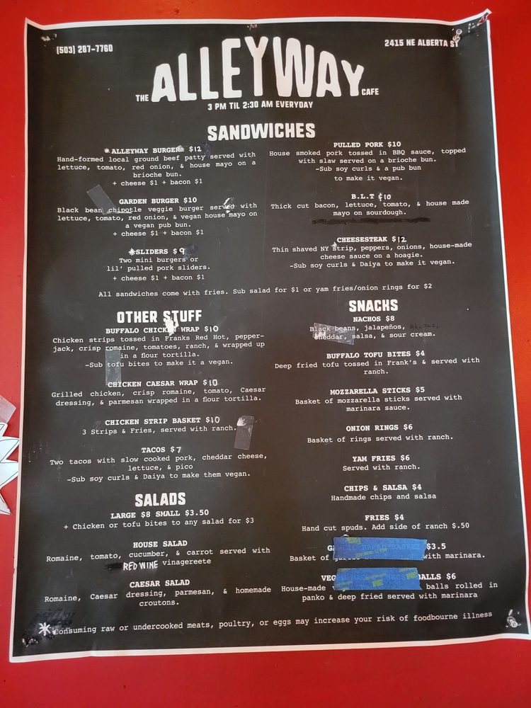 Alleyway Cafe & Bar Menu (2025 Update)